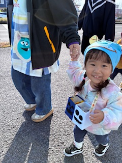 ハロウィンのイベントがありました!ディズニーの可愛い帽子をかぶって仮装するこどもたち♡郵便局さん、商工会議所さん、釧之助さん、交番、ほっともっとさんの順でお菓子を配りながら歩いてきましたよ♡各所からお菓子をいただくと、「ありがとう!」とこどもたちの素敵な声が聞こえてきました(^^)園に戻ると、きー先生からもお菓子のプレゼントが♬とっても楽しいハロウィンでした🎃