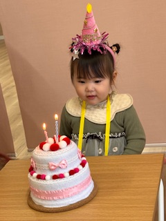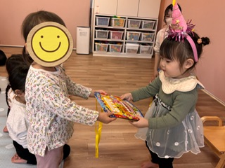 11月生まれさんのお誕生会がありました!今月のお誕生児さんは2名!みんなの前に出て少し緊張気味でしたが、お友だちからお誕生日カードを受けとる時はと〜っても嬉しそうでしたよ!せんせいからのお楽しみは、びっくりあにまる🐾「ふぅー!」っとみんなで膨らませると、箱からいちごを持ったどうぶつたちが登場しケーキにデコレーションして楽しんでいました⭐︎