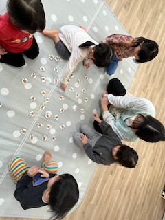 クリスマスのカードを使って神経衰弱をして遊びました!1枚のカードにねらいを定めペアを探す子もいればいろんな所を探す子どのカードにしようかじっくり悩む子もいました!お友だち同士で「ここにあるよ」と教える姿も見られましたよ!カードが取れても取れなくても、「やったー!」「ざんねーん!」とみんなで楽しみました♬みんな1枚以上カードをゲットすることができて、大満足な様子でした(*^▽^*)