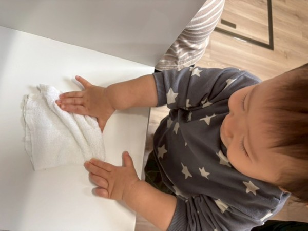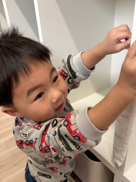 令和7年12月26日つきほし組さんで大掃除をしました!1年お世話になった、ロッカーや椅子を綺麗に拭いていきました(^^)「ピカピカだね〜」や「きれいになったよ〜」と言い、楽しみながら綺麗にすることができました♪今年1年ありがとうございました!また年明け元気に登園するのを待っています☺︎