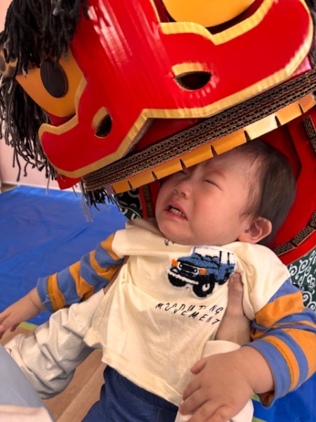 1月15日(木)に新年お楽しみ会がありました!絵馬や獅子舞にちなんだお話をした後、大きな獅子舞が登場!!怖がりながらもありがとうやバイバイを言って頭を〝がぶっ〟とかじってもらいましたよ✨今年の餅つきはキッズベースかつらの学童さんも参加してくれました!力強い餅つきを見たあと、子どもたちも「よいしょ!」と言いながらお餅をぺったんぺったんと餅をつきました♡そのあとは実際についたお餅を〝こねこね〟丸めてもらいました!初めての感触に驚きつつも楽しそうな子どもたちでした🎶