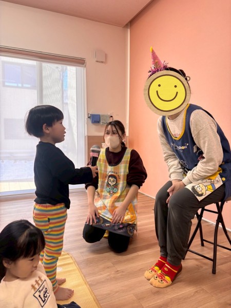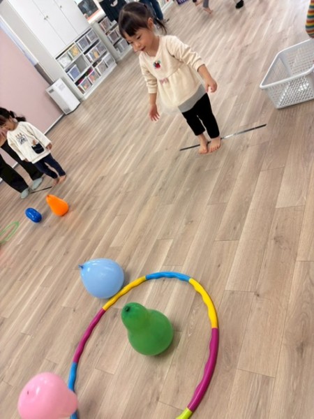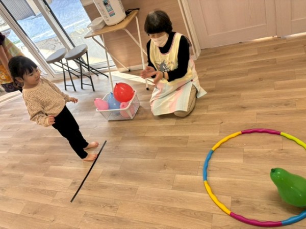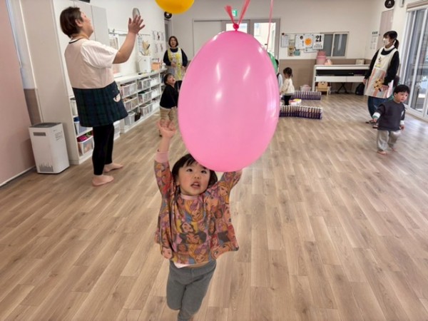 1月生まれの誕生児さんがいなかったので代わりに1月生まれの職員をお祝いました!好きな色や好きなお菓子をせんせいに質問して楽しんでいましたよ(^^)せんせいからのお楽しみは、風船遊び🎈『風船当てゲーム』『風船タッチ』『フープに風船を入れよう!』の3種類から好きな場所を選び、身体をいーっぱい動かして楽しむこどもたちでした✨