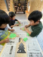 先日のクリスマス製作の様子です🎅 粘土でツリーを型取り、ポンポンや松ぼっくり、ビーズでキレイにデコ...