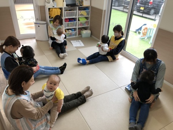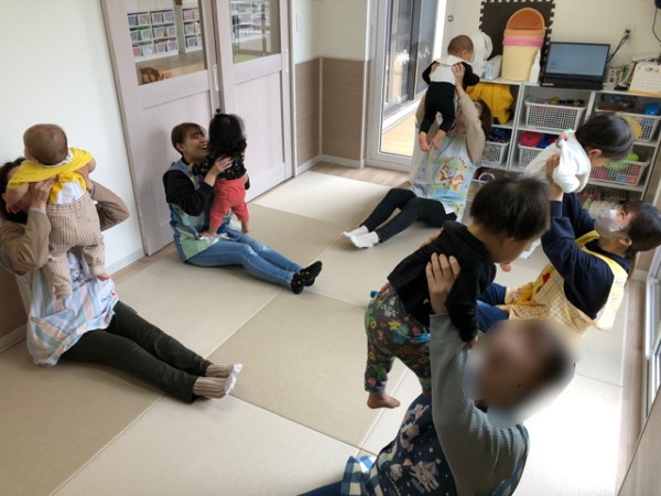 毎朝、WARAリズム®️という体幹エクササイズを保育に取り入れています🎵 保育士との運動あそびを楽しんでいる、そらぐみさんです(๑>◡<๑)