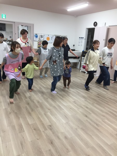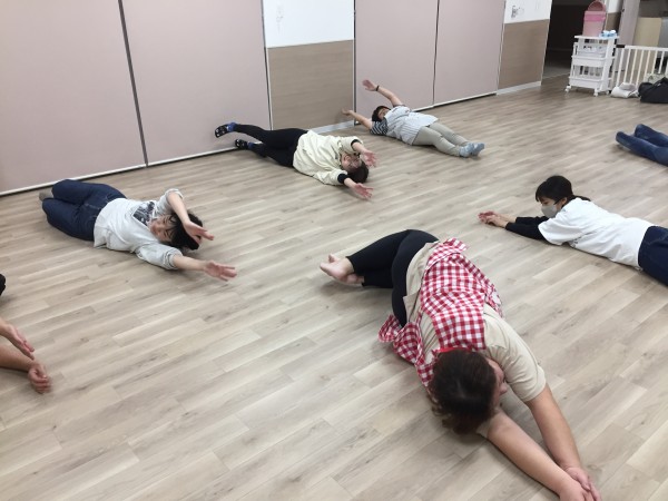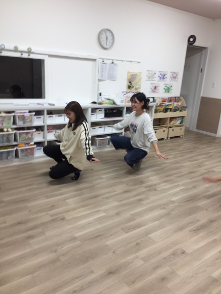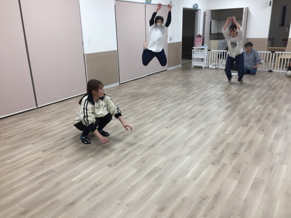 音楽リズムの園内研修を行いました!職員の子供も交えて33個の音楽リズムを実際に行い身体の使い方や、やり方を確認しました!それぞれのリズムで何が鍛えられるかなども資料を参考に復習しましたよ!全力で行うと、大変でしたがとても楽しく笑顔の絶えない研修になりました♪