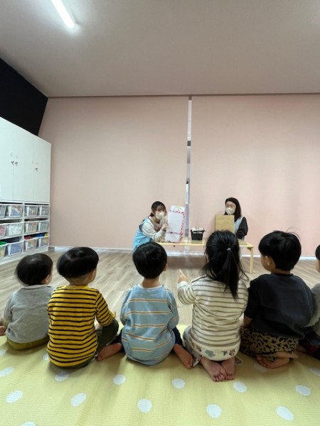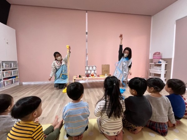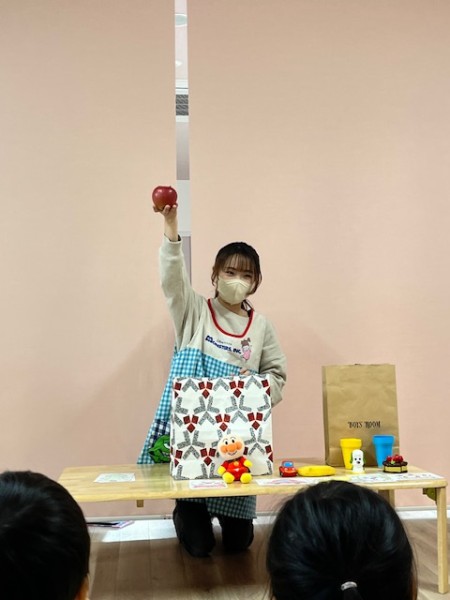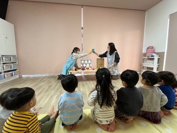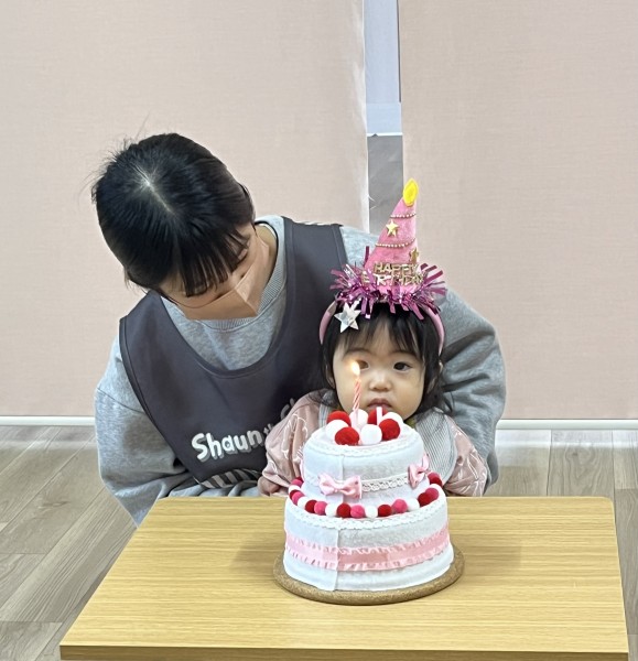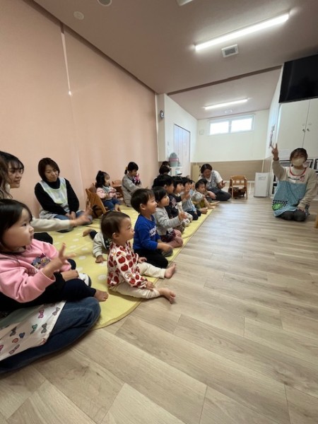11月生まれのお友だちの誕生会がありました☆初めての誕生会でしたがだいすきな先生と一緒にケーキの火を消したりし楽しんで参加出来ていましたよᵕ̈保育士からのおたのしみはマジック!選んだカードが飛び出してきたり、カードを袋に入れると本物のリンゴが出てきたり?!うわ~~すごいね!と驚いている皆がとっても可愛かったです♬