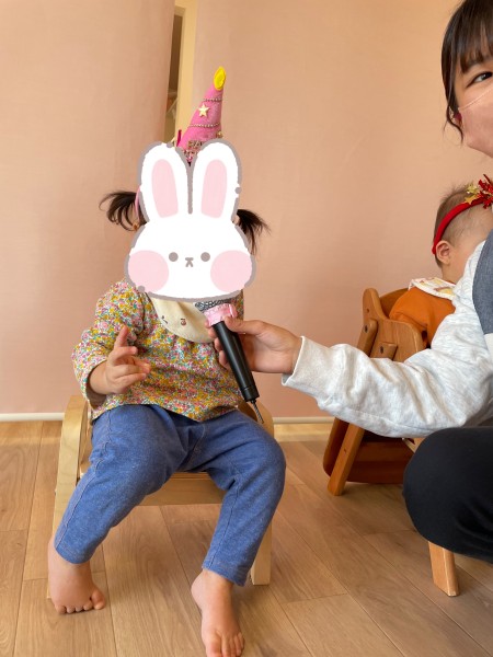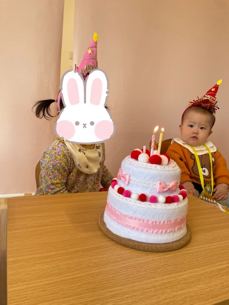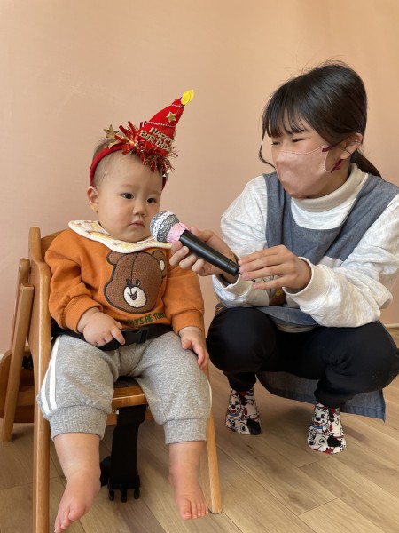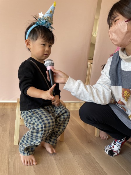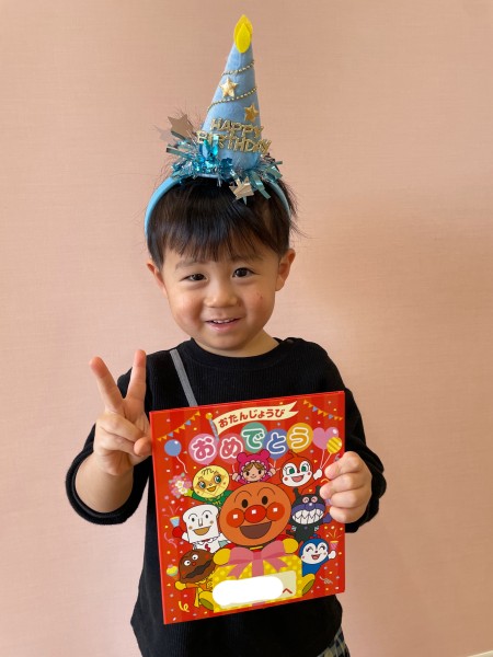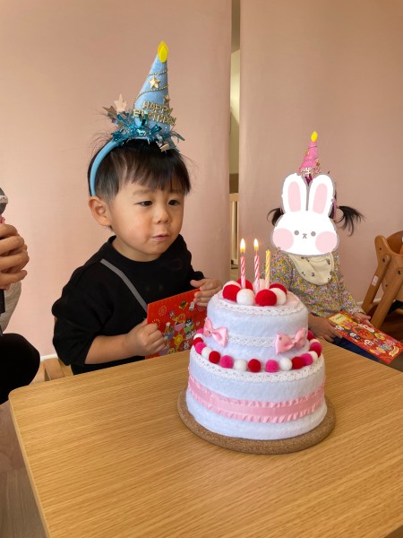 12月生まれのお誕生日会がありました!初めてのお誕生日で少し緊張しているお友達もいましたが、みんな上手に自己紹介や、自分の年齢を答えることができていました^o^保育士からの出し物では、煙突から落ちてきたクリスマスプレゼントはなんでしょう!というクイズをしました!何もしていないと見えないプレゼントがライトを当てると薄らプレゼントが見え、「くるま!」「風船!」と元気よく答え、楽しく参加していましたよ♡
