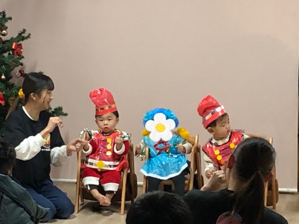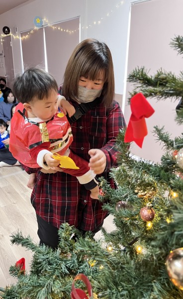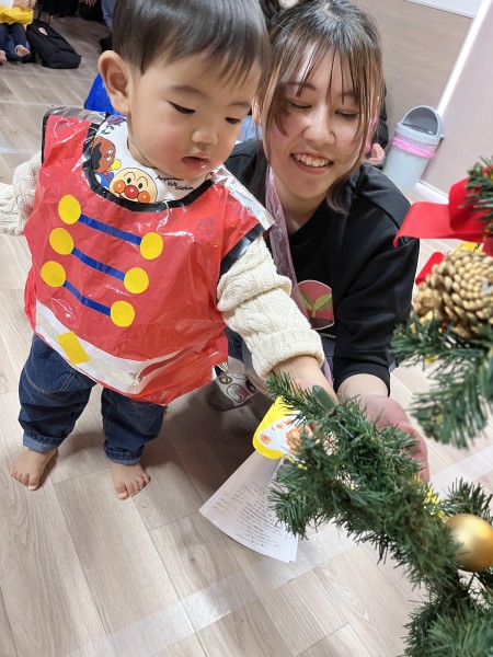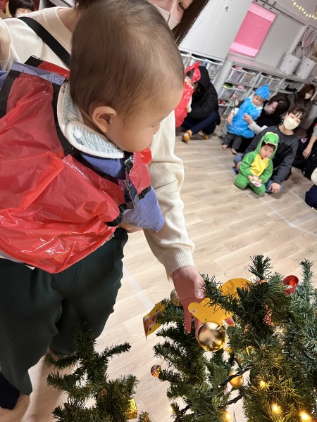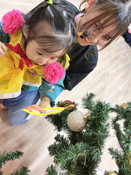 12月20日にクリスマス会がありました!今年から保護者の方にもご参加頂きミニ発表会も行いました!初めて大勢の前で発表する経験をした園児さんが多く、とても緊張していましたが楽しんで遊戯や器楽演奏を披露していました❤︎その後は、ツリーに手作りのオーナメントを飾ったり点灯式で部屋一面の電飾が光ると「わぁ〜!」って喜んでいましたよ♩そしてみんなで「メリークリスマス!!」と叫んだ時に、、、音楽が聞こえ始めサンタさんが登場!!「わぁ〜」という声と共に拍手をしてお出迎えし、プレゼントを貰い、ありがとうをしましたよ〜!その後は保護者の方と美味しいご飯を沢山食べました♩