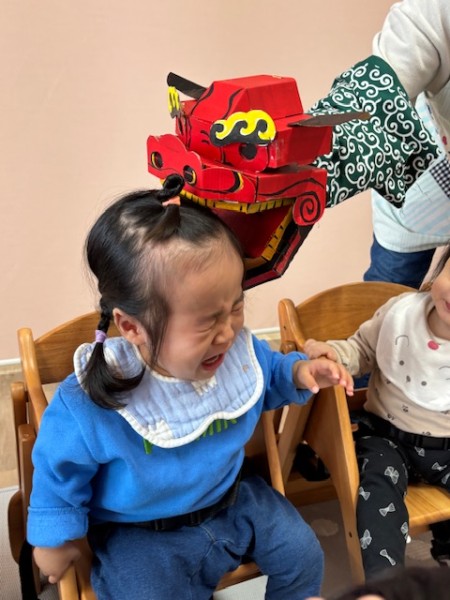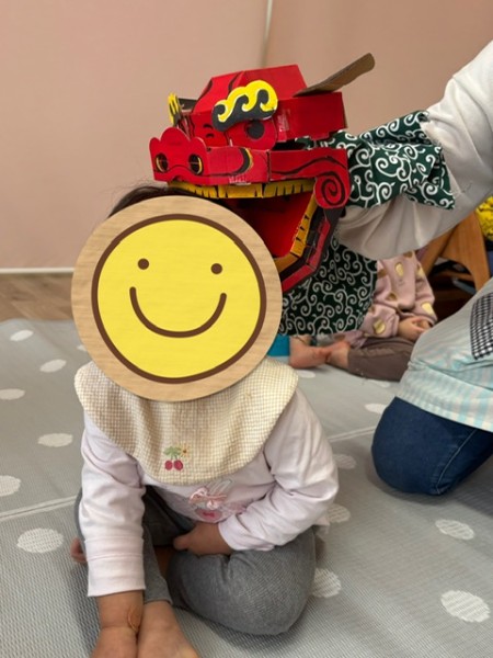 1月17日(金)に新年お楽しみ会がありました!お正月にちなんだ手遊びや絵本を見て楽しんだ後、獅子舞が登場!!怖がりながらも頭を“カプッ”とかじってもらいましたよᐢᴗᐢ♪今年の餅つきはライブスデザインワイズの多田さんが参加してくれました!力強く“ぺったんぺったん”と餅をつく姿がとても素敵でした✨子ども達も「よいしょ!よいしょ!」と声を掛けながら楽しんだり実際に杵を持って餅つき体験をしたりしましたよ♡