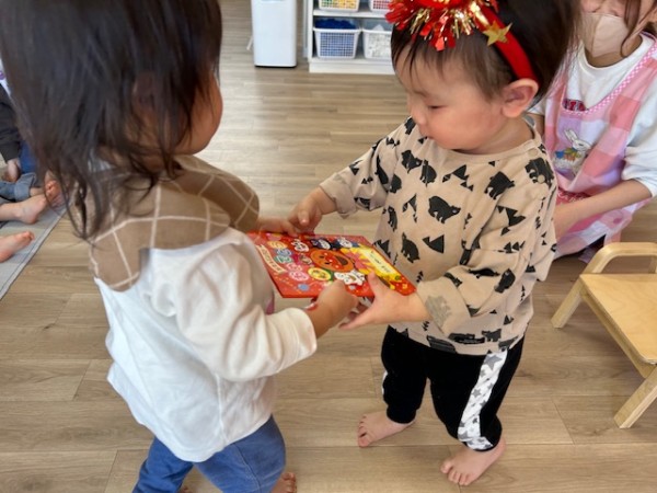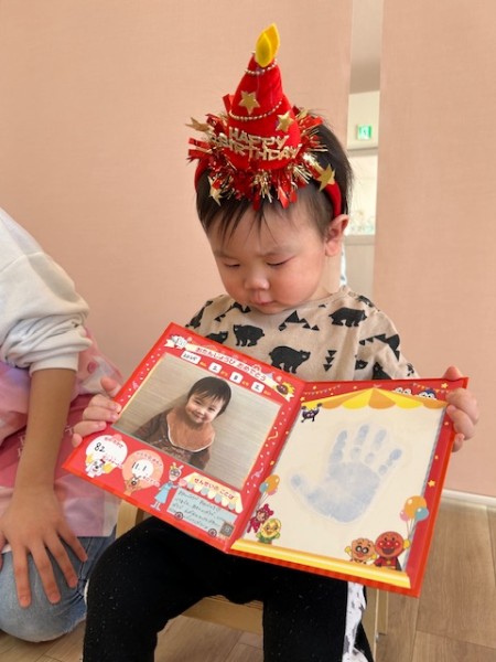 2月19日(水)にお誕生会がありました⭐︎2月生まれのお友だちは2名でしたが1名欠席でした。少し緊張気味でしたが、お友だちからお誕生日カードを受けとる時はとても嬉しそうでした(^^)そして、保育士からのおたのしみは集合ゲーム!どのカードにしようかな〜と楽しそうに選んでいましたよ♬