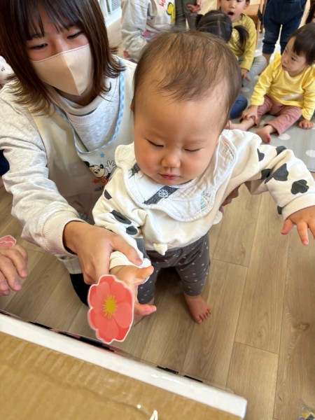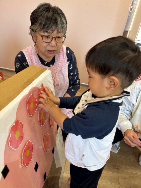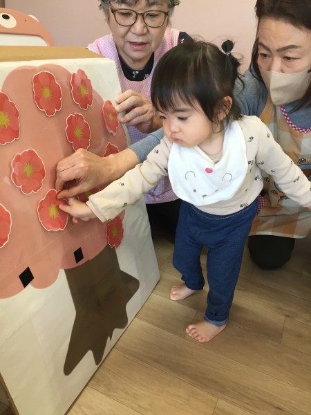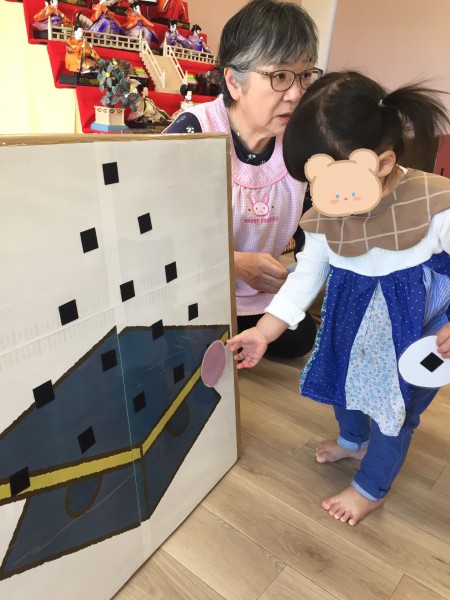 3月3日にひなまつり会がありました!ひなまつりの絵本を見た後に「うれしいひなまつり」の歌をみんなで歌いました♩その後はゲームを行ない、そら組さんは「桃の花」つき組さんは「ひなあられ」ほし組さんは「ひな人形」をペタペタと貼って完成させましたよ!給食のちらし寿司もたっくさんおかわりして会食を楽しみました❤︎そしてお昼寝から起きると、、午後のおやつはみんな大好きいちごのケーキ!!「わぁー!!」と声を出して喜んでいました❤︎楽しいひなまつり会でした!