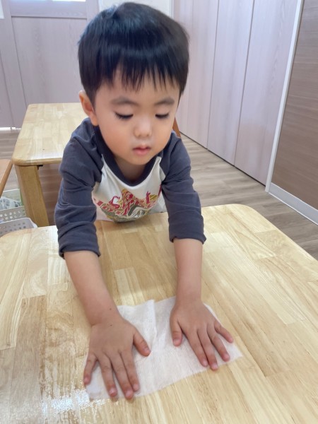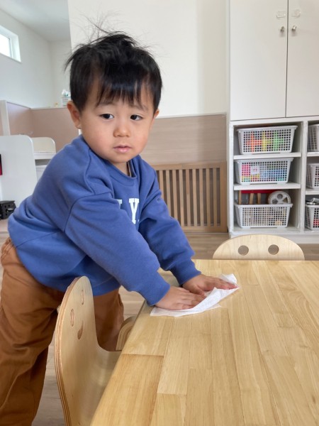 《ほしぐみ》2月からお当番活動をしています!!お仕事の内容は朝の会でのカレンダーめくり、お天気確認から始まり給食前に全クラスのテーブルを拭いたりお布団をせんせいと一緒に並べたり…初めは緊張気味のみんなでしたが、少しづつ慣れ今はとても楽しんで取り組んでいます♫ お当番さんの日にはせんせいのお手伝いに立候補!!なんて日も♡頼もしいほしぐみさんです(*^^*)