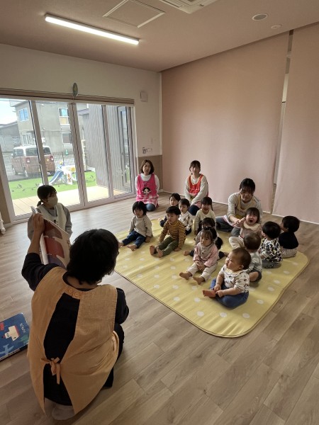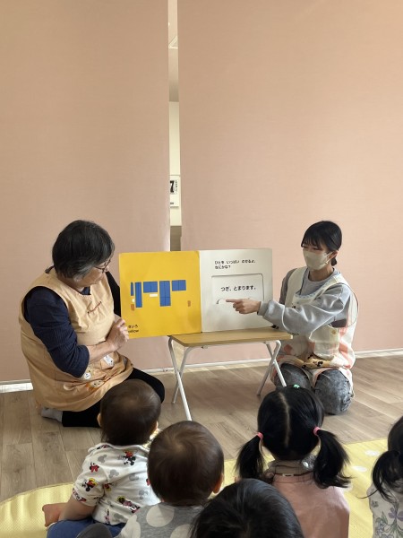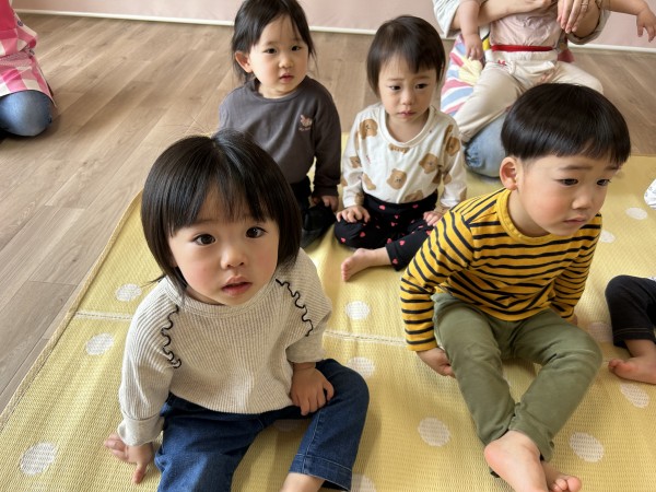 今月のお誕生児さんは誰もいなかったのですが、4月生まれのお誕生日会がありました!保育士からの出し物では、「ぞうくんのさんぽ」「のりものな〜んだ?」の大型絵本でしたよ!ぞうくんのさんぽを見ているつきぐみさんは、ニコニコで笑いながら見ていました👀のりものクイズでは、ほしぐみさん大活躍✨「自転車!」「飛行機!」元気に答えてくれました🎶