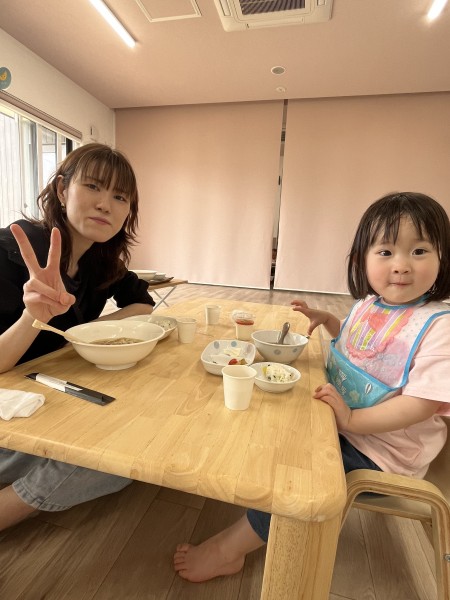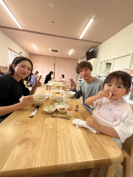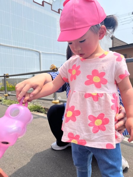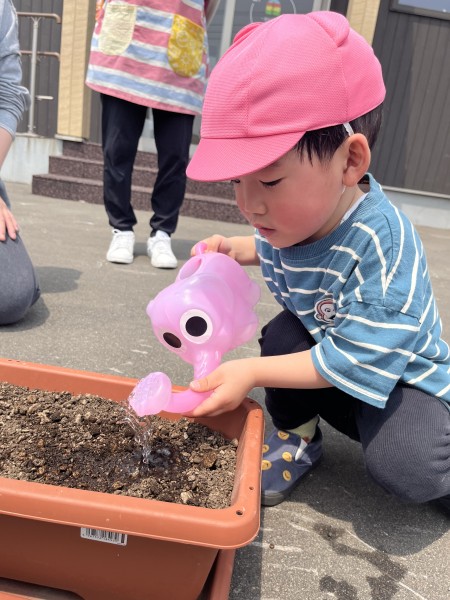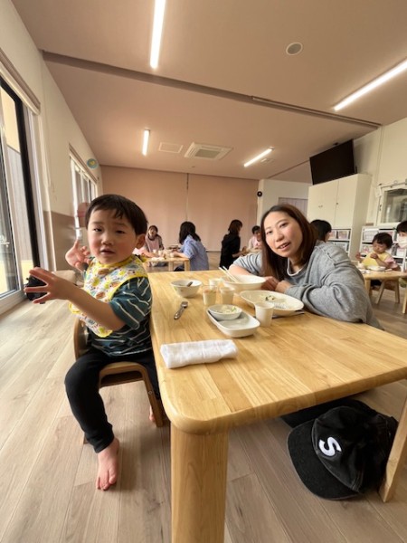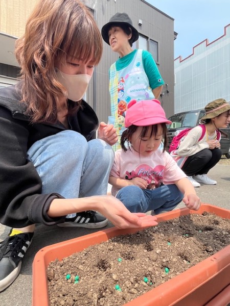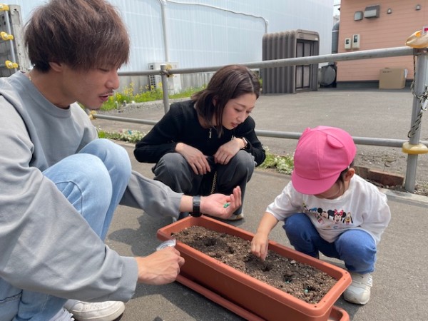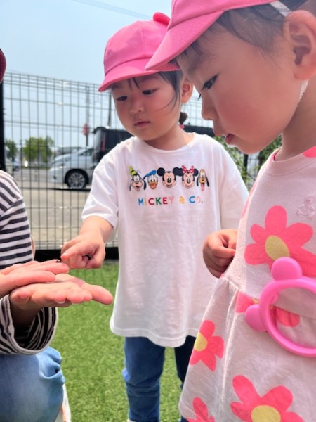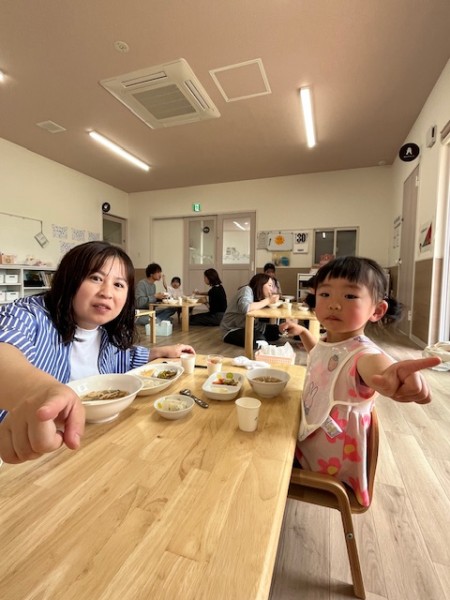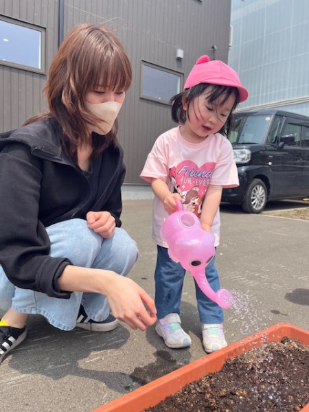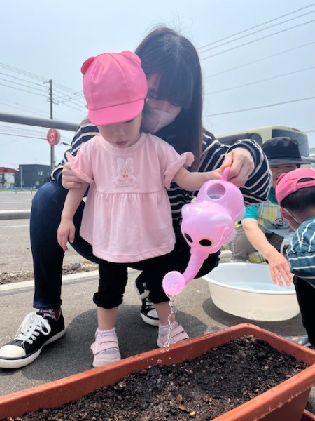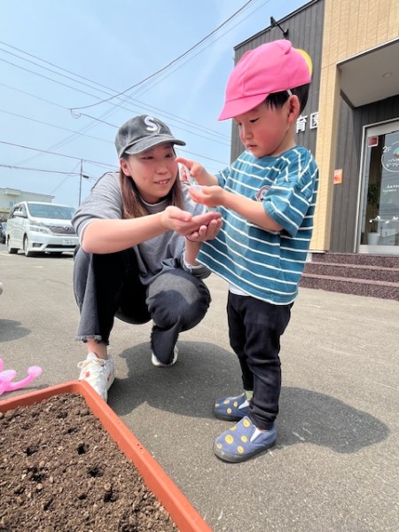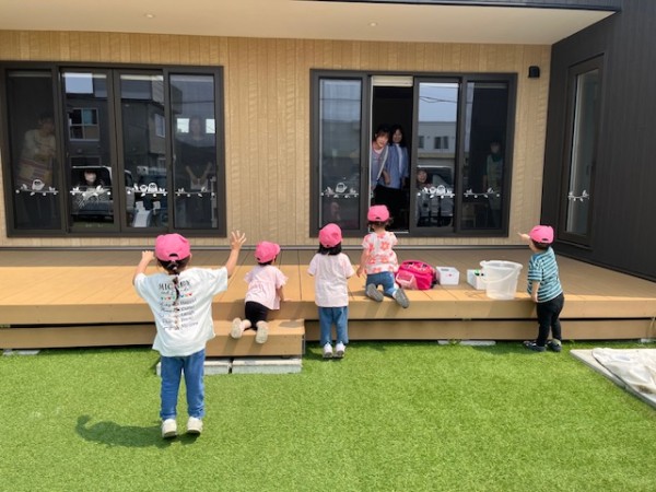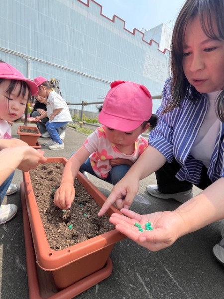 5/31(金)にほしぐみさんの参観日がありました!保護者の方には子ども達が園庭で遊ぶ様子を、室内のロールカーテン越しに見ていただきました!その後、園庭で一緒に遊んだり絹さやの種を植えたり♡保護者の方とたくさん遊ぶ事ができて、テンションが高くなる子ども達でした⭐︎お外でいっぱい遊んだ後はお楽しみの給食時間!保護者の方に甘えながらも、美味しそうに食べる姿が見られましたよ(^^)♪