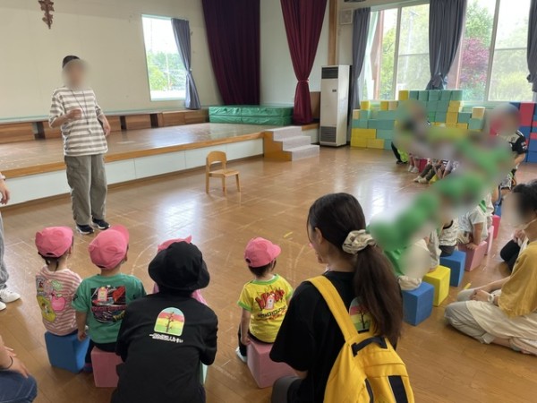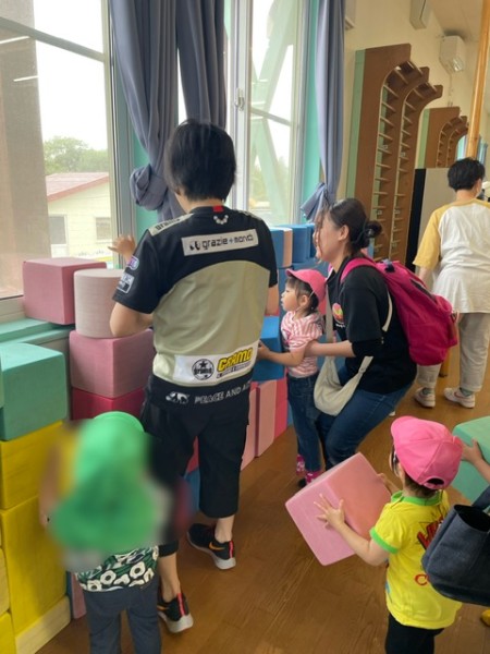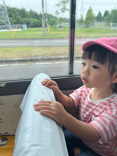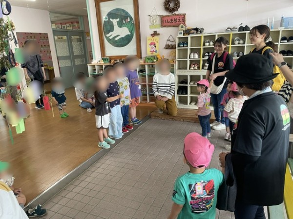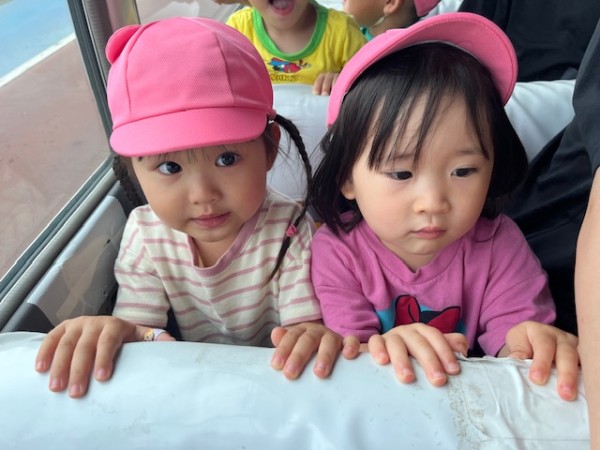 7月3日(木)に釧路めぐみ幼稚園さんとの交流会があり、ほしぐみさん5名が参加してきました!めぐみ幼稚園さんのネコバスでお迎えに来ていただき、到着すると玄関で年長さんがお出迎えをしてくれましたよ♡つぼみぐみさん、つくしぐみさんと一緒に朝の会をし、その後は園庭へ!!最初は緊張気味で保育者の側で遊ぶほしぐみさんでしたが、慣れてくると色んな遊具や砂場に行き、い〜っぱい楽しみました♪保育園に帰ってきてからも「たのしかった〜!」「またいきたい!」とにこにこスマイルがいっぱいのほしぐみさんでした(*^▽^*)めぐみ幼稚園のみなさん、ありがとうございました!