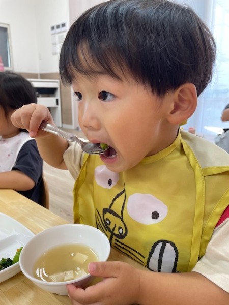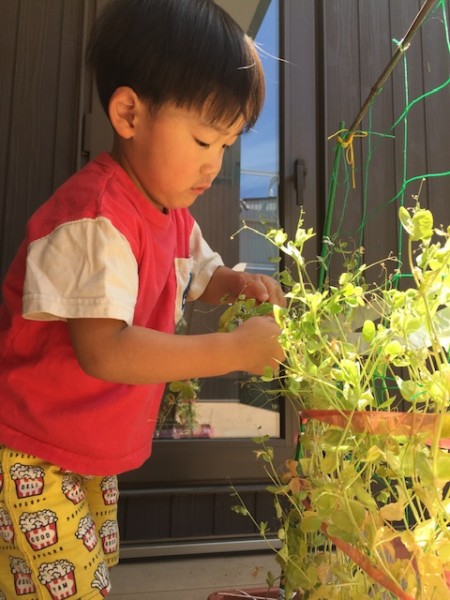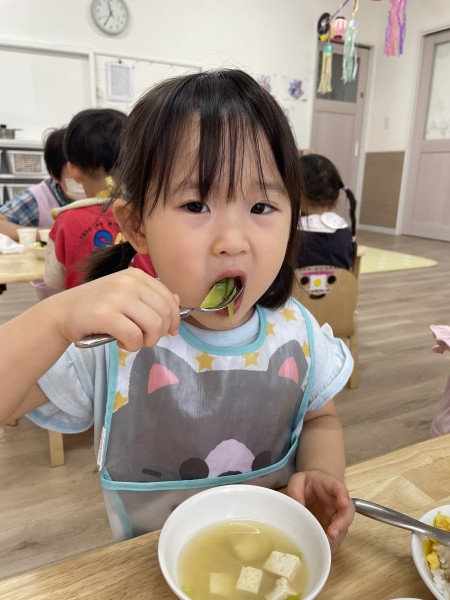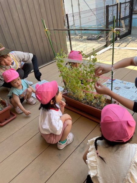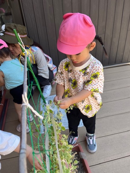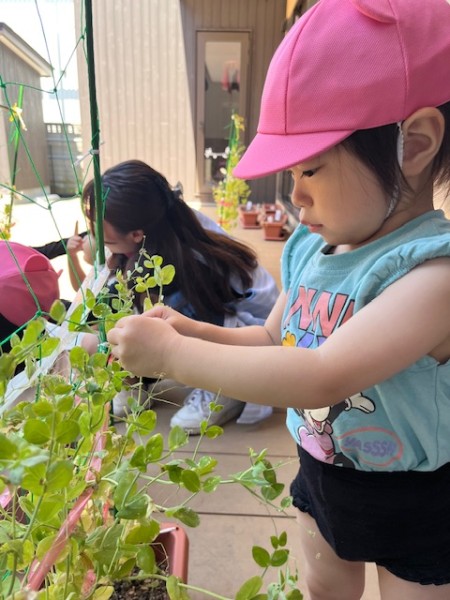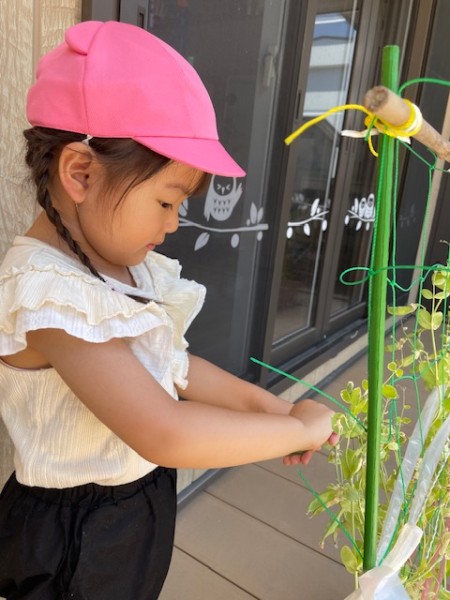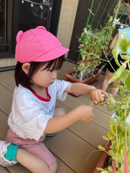 ほしぐみさんが「おおきくなぁ〜れ!」と毎日水やりをし、大切に育ててきた絹さやを7/24(木)に収穫しました!!半分はお家にお持ち帰り!残りの半分は、豆腐と絹さやの味噌汁にして後日、給食で美味しくいただきました(๑˃̵ᴗ˂̵)♡