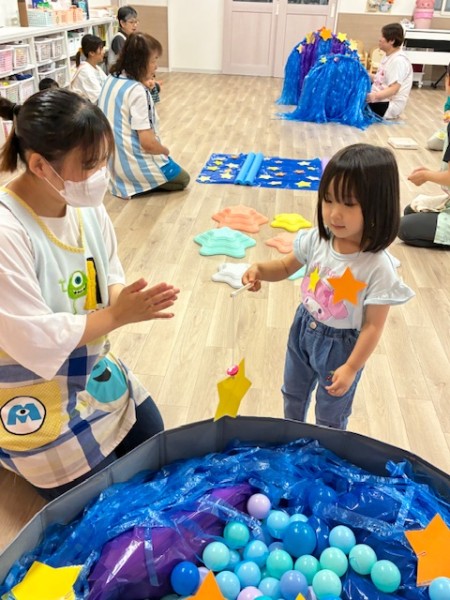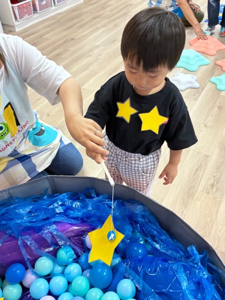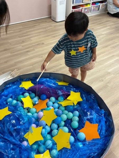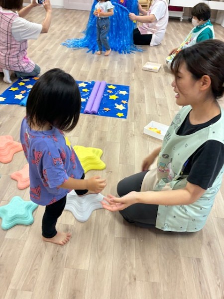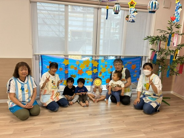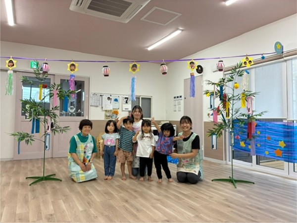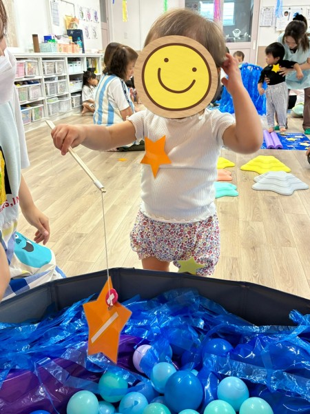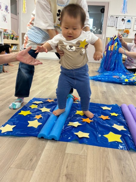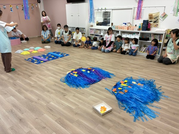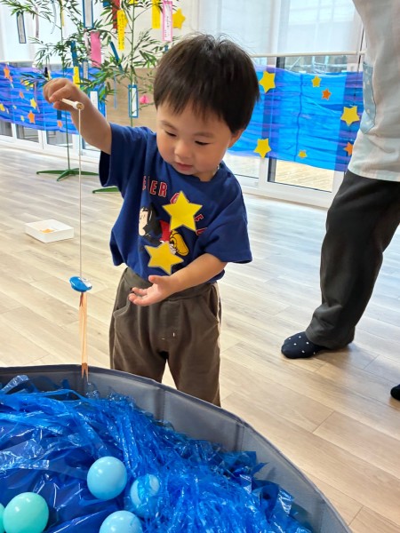 令和7年8月7日(木曜日)七夕会がありました!ホールに集まり、七夕ってどんな日?簡単なお話や製作と短冊の紹介を聞きましたよ^^短冊にはみんなの可愛い願いや、保護者の方・せんせい方の面白い?!願いが書いてありました♬ そして「星を集めて天の川作ろう」のゲームをしました!トンネルや橋に星釣りをしてたくさんのお星さまをGET!!綺麗な天の川が完成しましたよ♡給食も七夕メニューでお星さまがいーっぱい!美味しくいただきました♡お休みのお友だちも多く、生憎の大雨だった七夕会ですがたくさんの笑顔、楽しむ姿が見られました!みんなの願い事が織姫様と彦星様に届きますように…★