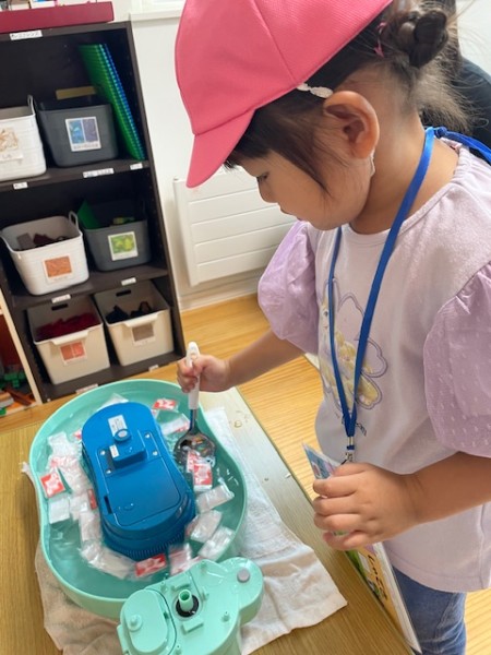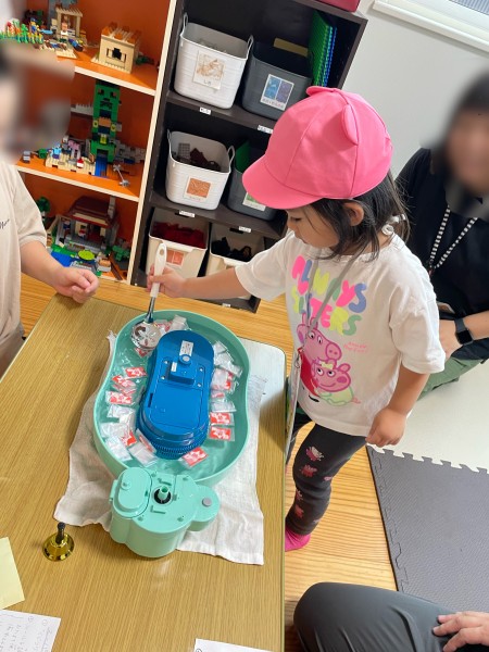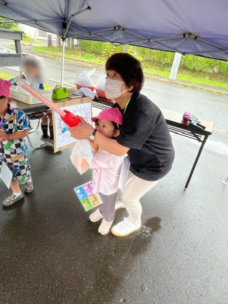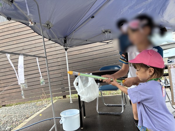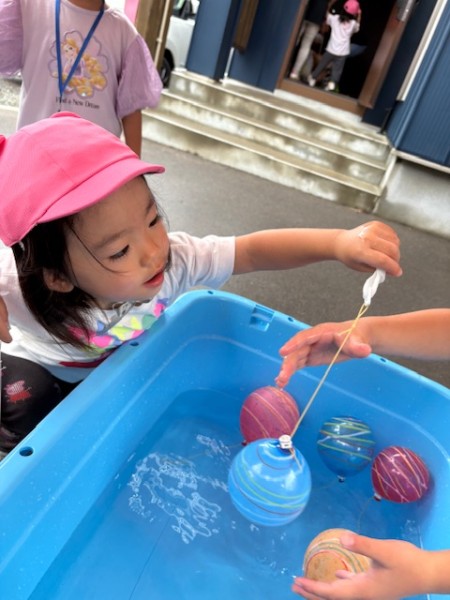 8月19日(火)に放課後等デイサービスだいちさんが主催する夏祭りにほしぐみ5名が参加してきました!2チームに分かれて、わなげ、射的、くじつり、ヨーヨー釣りを楽しみました!ちょっと難しい所は施設のお兄さんやお姉さんに手伝ってもらうほしぐみさん⭐︎「ヨーヨーつれた!」「おかしゲット〜!」と喜んでいましたよ!遊び終わったらゲットした景品の中から1つおかしを選びおやつタイム!みんなで美味しくいただきました♬ 保育園に帰ってきてからも「たのしかった〜!」とにこにこスマイルがいっぱいのほしぐみさんでした(*^▽^*)放課後等デイサービスだいちのみなさん、ありがとうございました!!