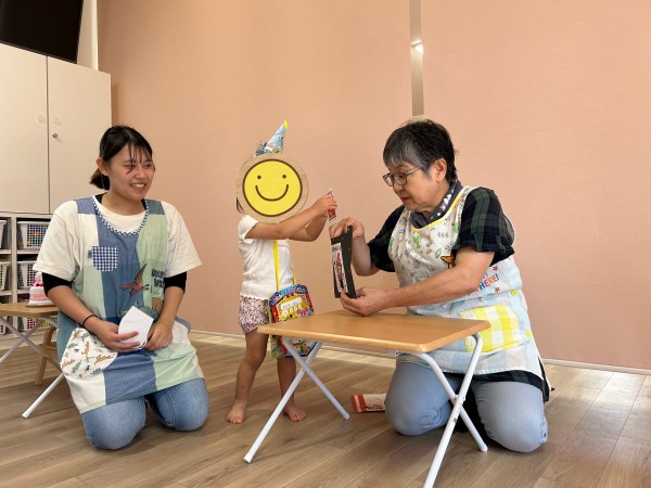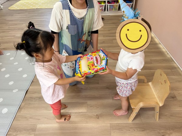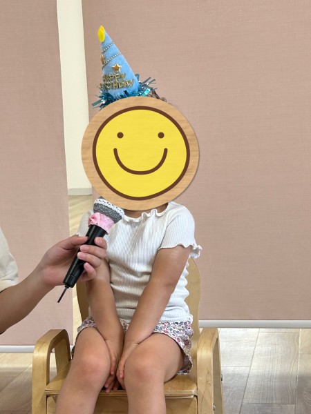 8月21日(木)に8月生まれのお友だちの誕生会がありました!大好きなプリンセスの曲で入場してくれました!!インタビューでは、照れながらもお名前や好きな食べ物など教えてくれました♬大きく息を吸って「ふぅ〜」とろうそくの火を消す姿がとっても可愛かったですよ♡せんせいからのお楽しみは魔法のふくろ!袋の中に食材のカードを入れて、みんなで「ちちんぷいぷいのぷ〜い!」と魔法をかけると、ケーキに大変身!楽しんでいました〜!