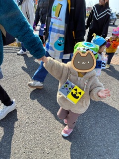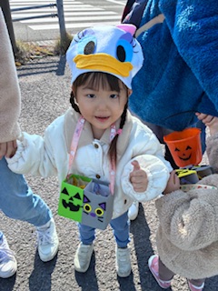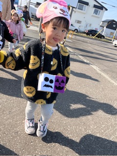 ハロウィンのイベントがありました!ディズニーの可愛い帽子をかぶって仮装するこどもたち♡郵便局さん、商工会議所さん、釧之助さん、交番、ほっともっとさんの順でお菓子を配りながら歩いてきましたよ♡各所からお菓子をいただくと、「ありがとう!」とこどもたちの素敵な声が聞こえてきました(^^)園に戻ると、きー先生からもお菓子のプレゼントが♬とっても楽しいハロウィンでした🎃