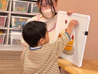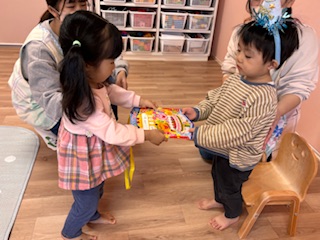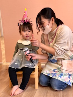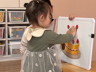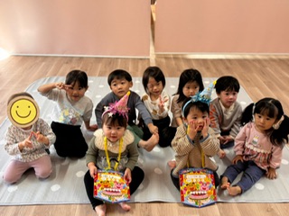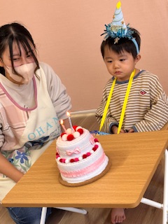 11月生まれさんのお誕生会がありました!今月のお誕生児さんは2名!みんなの前に出て少し緊張気味でしたが、お友だちからお誕生日カードを受けとる時はと〜っても嬉しそうでしたよ!せんせいからのお楽しみは、びっくりあにまる🐾「ふぅー!」っとみんなで膨らませると、箱からいちごを持ったどうぶつたちが登場しケーキにデコレーションして楽しんでいました⭐︎