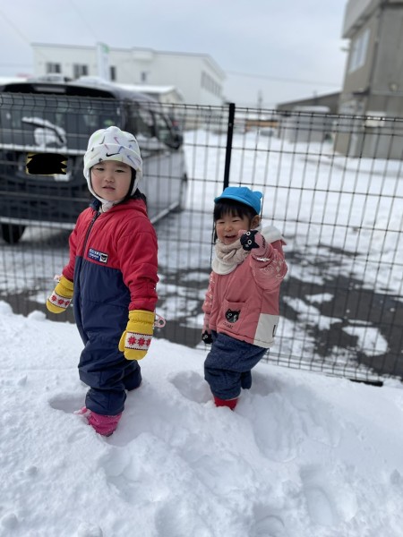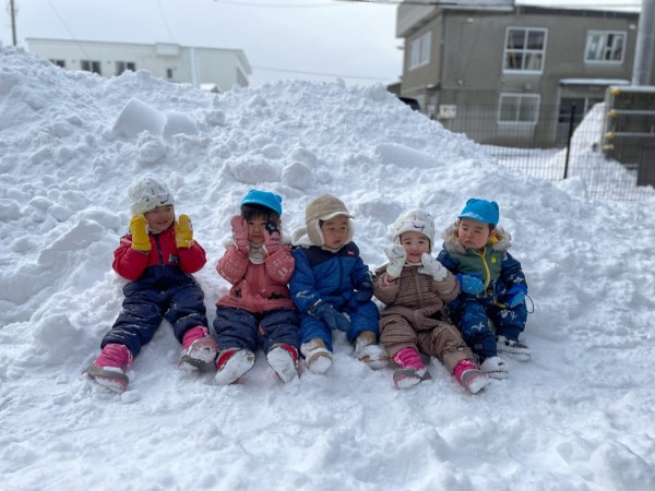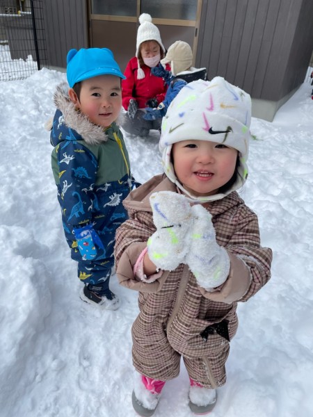 ホームページをご覧頂きありがとうございます!開園から3ヶ月が過ぎ子ども達も園での生活に慣れ保育士と一緒に毎日楽しく過ごしています☆そんな子どもたちの様子や行事等の写真を不定期ではありますがupしていきますので宜しくお願いします♪ 今回は1.2歳児クラス つきぐみ ほしぐみさんの雪遊びの様子です☆園庭に沢山積もった雪に大喜びで元気いっぱい楽しみました♫