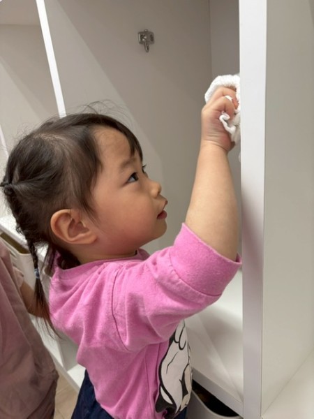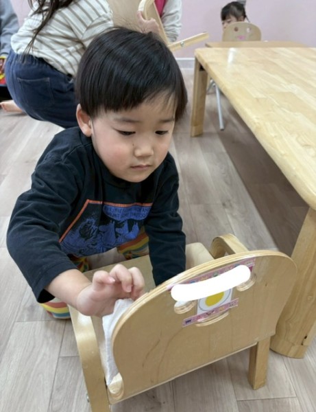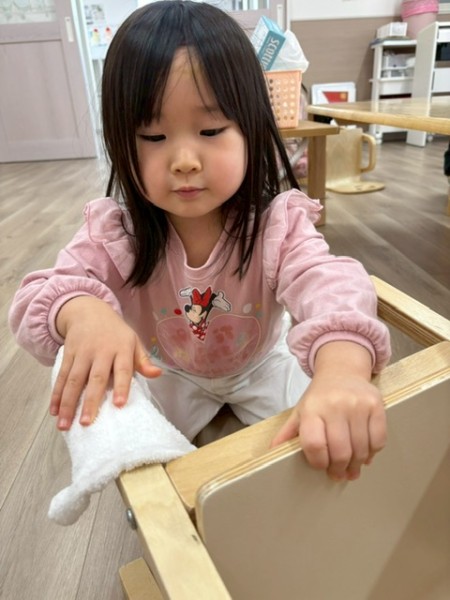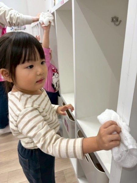令和7年12月26日つきほし組さんで大掃除をしました!1年お世話になった、ロッカーや椅子を綺麗に拭いていきました(^^)「ピカピカだね〜」や「きれいになったよ〜」と言い、楽しみながら綺麗にすることができました♪今年1年ありがとうございました!また年明け元気に登園するのを待っています☺︎