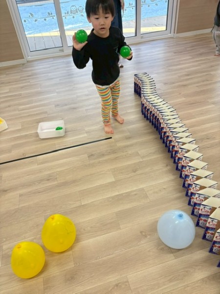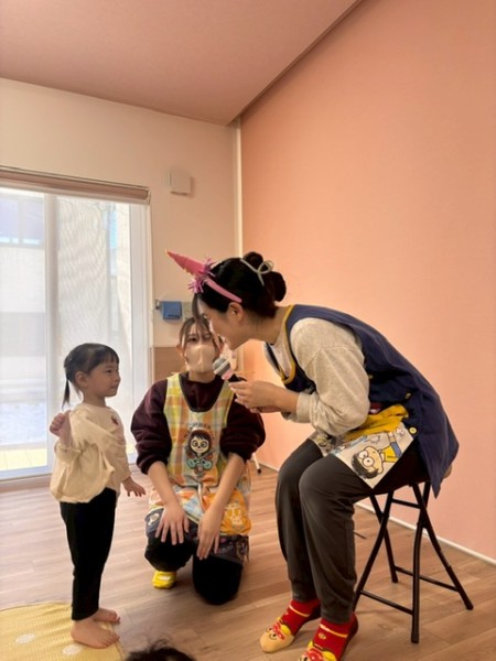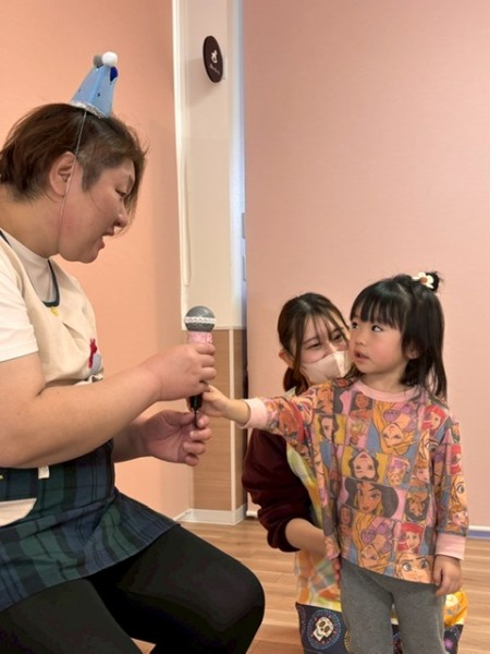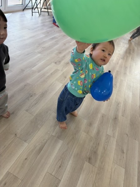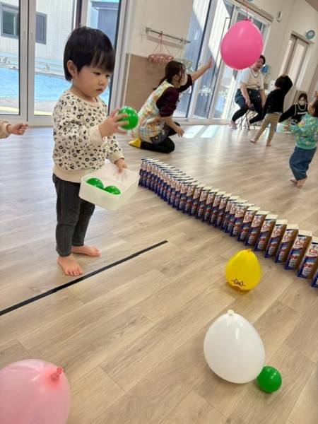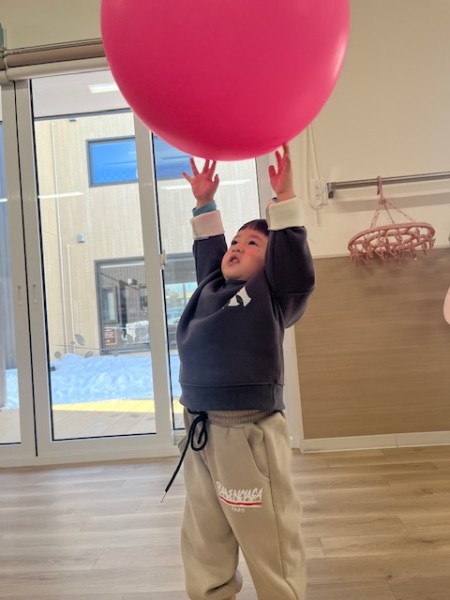 1月生まれの誕生児さんがいなかったので代わりに1月生まれの職員をお祝いました!好きな色や好きなお菓子をせんせいに質問して楽しんでいましたよ(^^)せんせいからのお楽しみは、風船遊び🎈『風船当てゲーム』『風船タッチ』『フープに風船を入れよう!』の3種類から好きな場所を選び、身体をいーっぱい動かして楽しむこどもたちでした✨