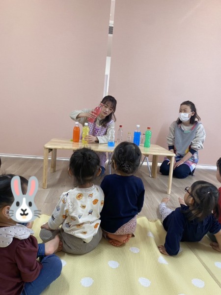 10月生まれのお友だちのお誕生会がありました。ドキドキ緊張した様子の誕生児さん!カチューシャを着けると、ちょっぴり涙がでましたが、お友だちに拍手の応援をしてもらい、上手に座ることができましたよ。保育士の出し物色水マジックは、みんな目をパッチリ!真剣なお顔で見て楽しみました♪