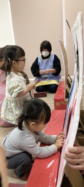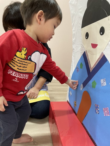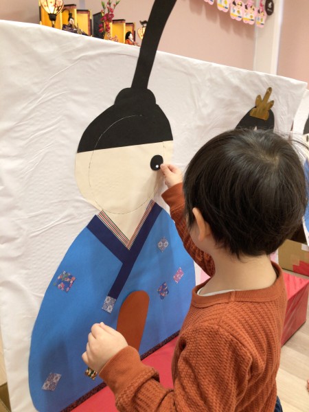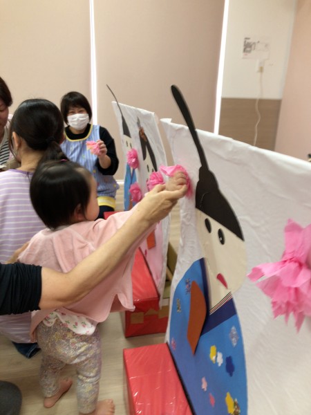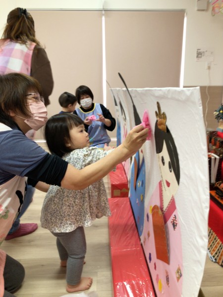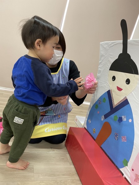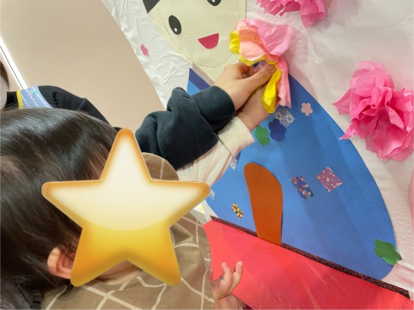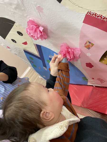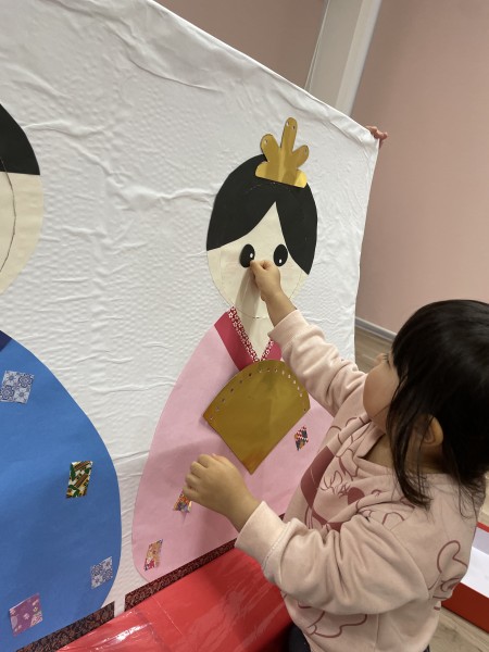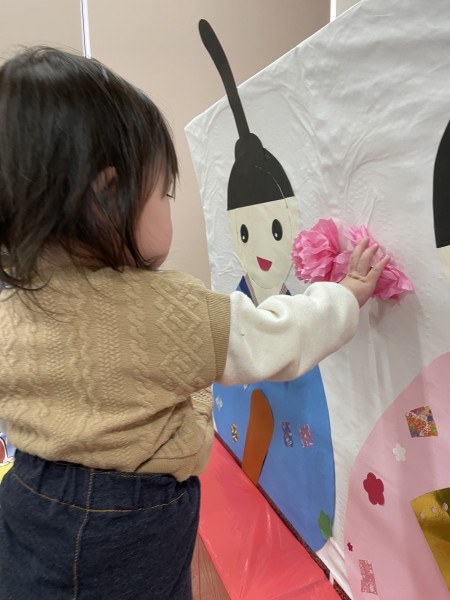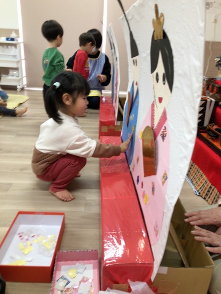 3月1日にひなまつり会をしました♪ひなまつりの絵本を見たり、大きなパネルのおひなさまに飾り付けをして、写真を撮ったり楽しく過ごしましたよ。給食はちらし寿司、午後のおやつはケーキを食べ、にこにこ笑顔の子ども達でした!