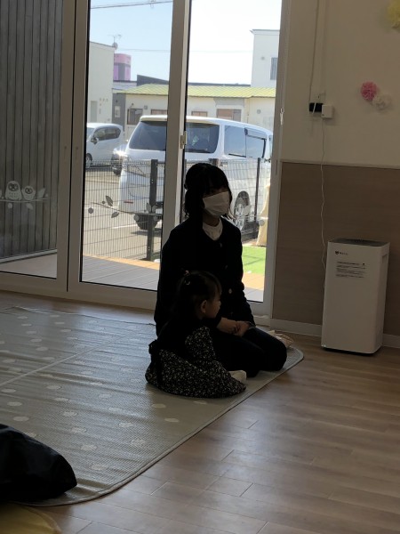 4月1日に入園式がありました♪担任から新入園児さんのお名前紹介がありましたが、お母さんに抱かれて安心しながら上手に手を挙げていました♡在園児さんから元気な声で歌と手遊びのプレゼントをし和やかな式になりました