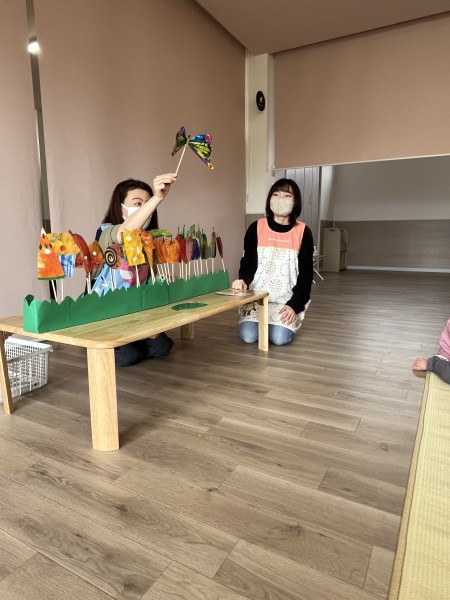 4月18日に4月生まれさんのお誕生会がありました〜!拍手で出迎えられ、少し照れながら誕生児さんが入場しました^^歌のプレゼントやバースデーカードをお友達から受け取りましたよ〜♩その後は保育者からの出し物『はらぺこあおむし』のペープサートを楽しみました!