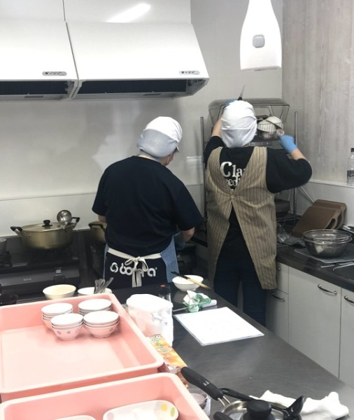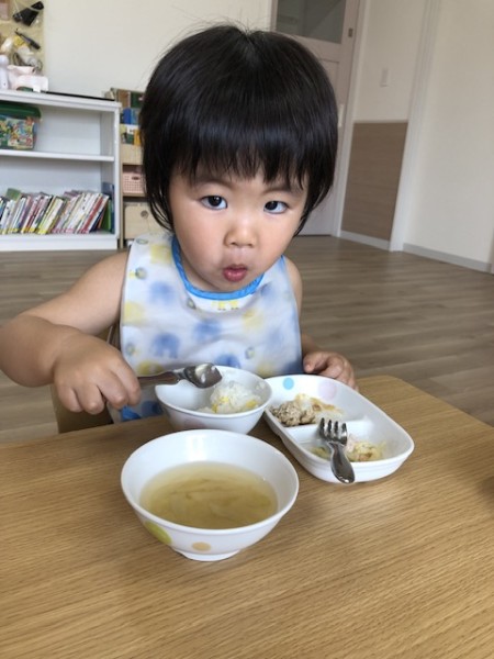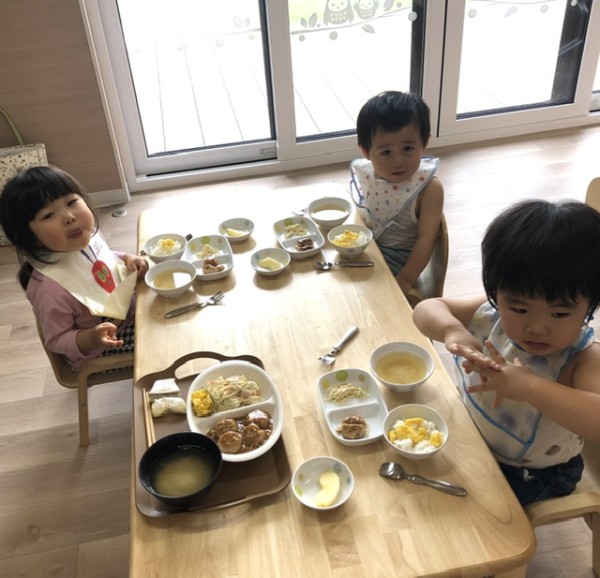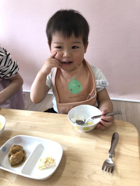 今日は、室内遊びでいっぱい動いて汗をかいてお腹がペコペコになりました!お楽しみの給食は、みんなが大好きなミートボールとスパゲッティサラダでした!調理室の様子もパチリしました!いつも美味しい給食をありがとうございます(*´꒳`*)