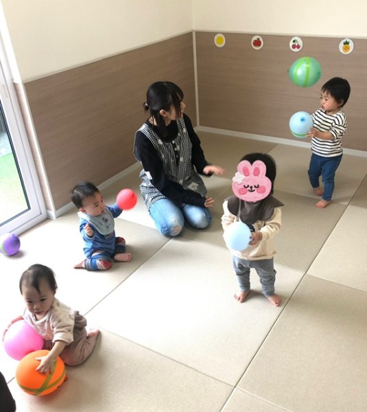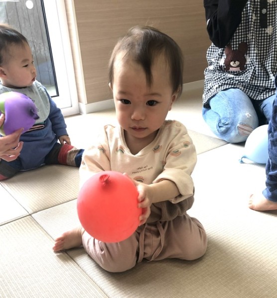 そらぐみさんと、つきぐみさんの様子です♡昨日は風船遊び!今日はおままごとで遊びました!
