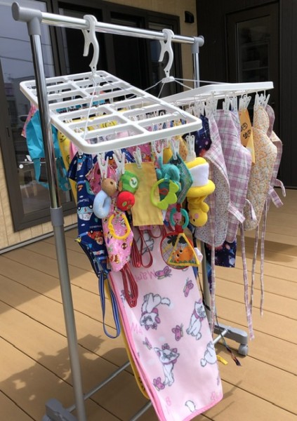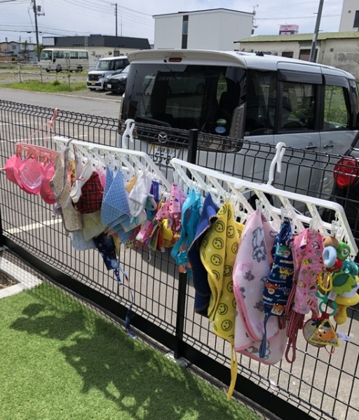 いつも子どもたちが遊んでいる布製品のオモチャを、お洗濯!お日様も出ているので、日光消毒にもなりますね(´∀`*)定期的にお洗濯していますが、綺麗になったオモチャは気持ち良く遊べますね♡そして、園庭にある姫りんごの木♡とーっても大きくなりました!新芽もたくさん出てきています!