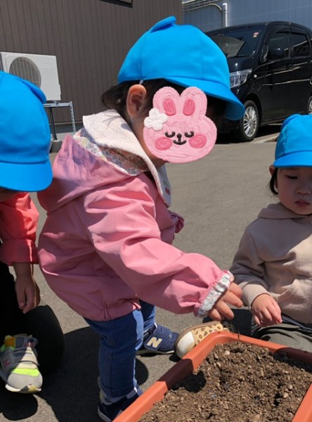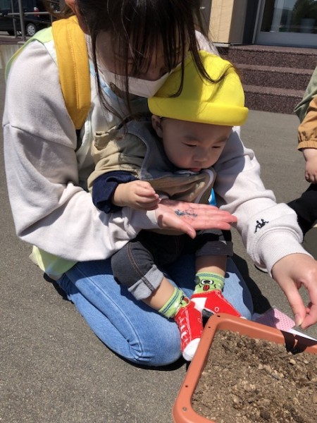 参観日の日に欠席だったおともだちが今日種まきをしました!これで、そらつきさん全員のベビーキャロットの種まき完了!早く芽が出ると良いね♡