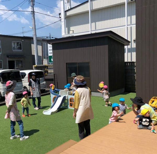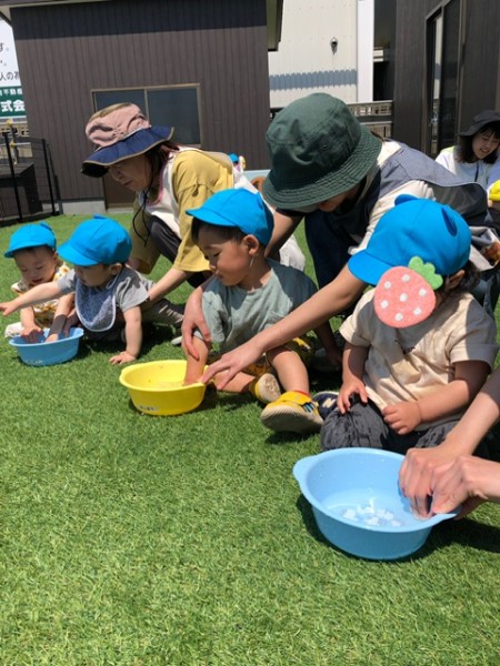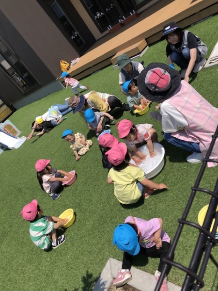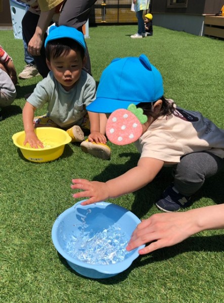そら・つき・ほしぐみさん、み〜んなで園庭で遊びました(*'▽'*) しゃぼん玉や水遊びをしましたよ!ここ数日、釧路もグッと気温が上がり暑いので冷たいお水が気持ち良いのか楽しそうに遊んでいました(๑>◡<๑) いーっぱい遊んで疲れちゃったかなぁ?給食の後、椅子に座ったまま寝てしまったお友達が。。。笑