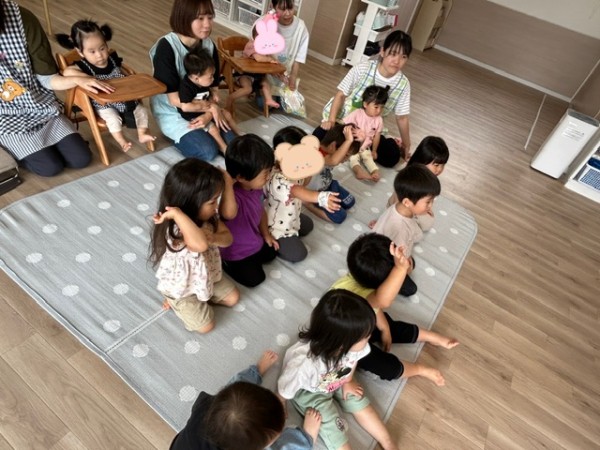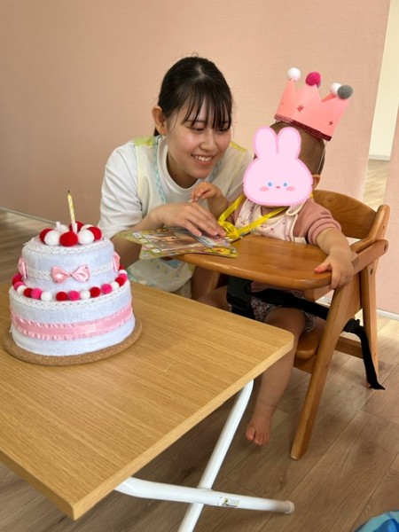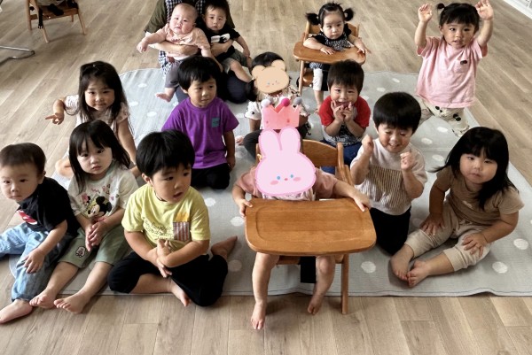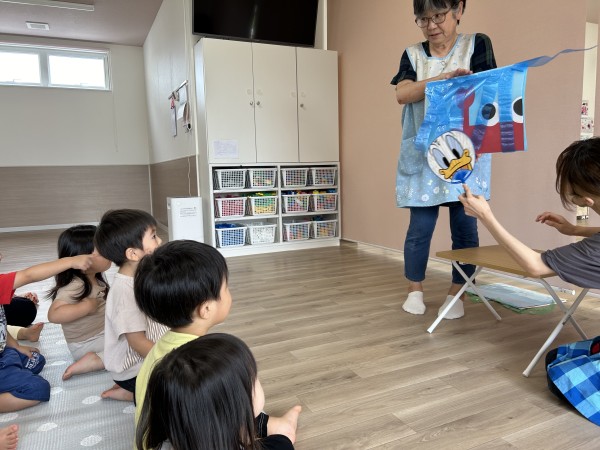 誕生会がありました(^^)8月生まれのお友だちは1名!誕生会への参加は初めてでしたが、お名前が呼ばれるとはーいと返事をしたり楽しんで参加出来ていました♬保育士からのおたのしみはクイズ!!なにが隠れてるのかな〜冒険に行ってみよう!と果物や海の生き物を見つけて喜んでいたみんなでしたよ☆