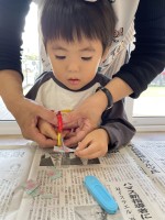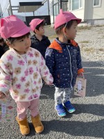 令和6年11月15日七五三の日にほしぐみさんは制作で作った千歳飴袋を持って近くにある神社へお参りに!!一人一人お賽銭をいれ、本坪鈴を鳴らして手を合わせ大きくなれますようにとお願いしました☆お迎えの際に千...