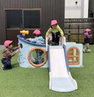 今日のつきぐみさんは、園庭に出ていーっぱい体を動かしました!滑り台に、ボール遊びetc…を楽しみましたよ(๑>◡