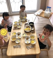今日は、室内遊びでいっぱい動いて汗をかいてお腹がペコペコになりました!お楽しみの給食は、みんなが大好きなミートボールとスパゲッティサラダでした!調理室の様子もパチリしました!いつも美味しい給食をあ...