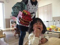 2月3日は節分でした!そらぐみさんはオニのパンツ、つき・ほしぐみさんはオニのお面を作り、身につけ元気に豆まき...のはずが思いがけずオニが登場してびっくりの子どもたちでした(^-^)午後のおやつはビーンズド...