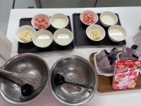 令和7年7月25日(金)に初めてのクッキング!!フルーチェを作りましたよ〜(^^)「フルーチェ作るんだよ!」と声をかけると目を輝かせながらエプロンをつける等の準備に取り組んでいました!まず初めに、フルーチ...