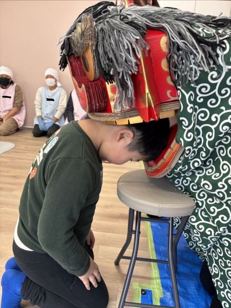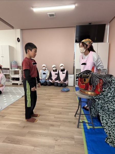 令和8年1月15日(木)新年お楽しみ会がありました!かつら保育園との初めての合同行事にみんなワクワク✨お獅子に質問をしたり、餅つきをしたり… 率先して声を出してたくさん盛り上げてくれました!!保育園のお友だちにも優しく接してくれましたよ🎶みんなお楽しみ、つきたてのおもちは…♡ おいしいーーー!!とおかわりの声がいっぱいでした(*^^*)そして今年はあいぱーる(こども応援課)からお二人、(株)上村塗装さんからはダウスさん・レキさん、そして保育園・キッズベースの建設に携わっていただいた(株)Y'sさんから八巻さんがご参加下さいました!ありがとうございました!!